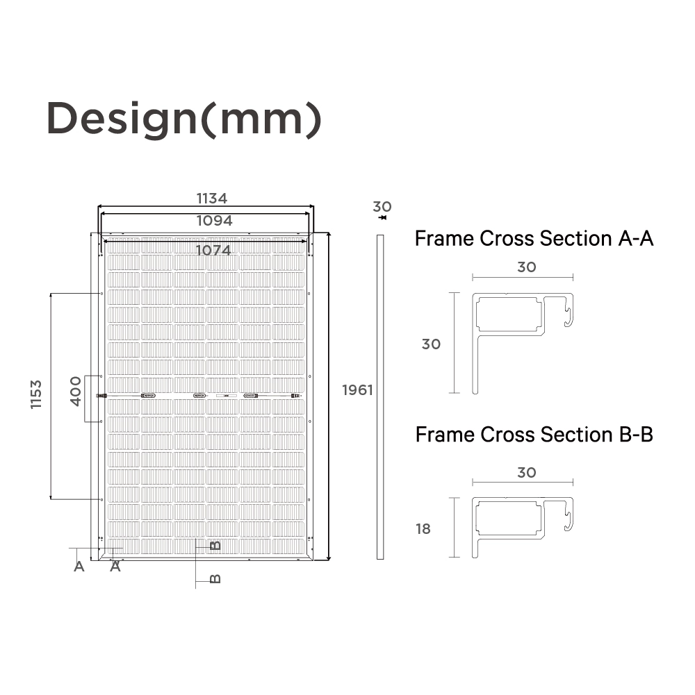 Doté d'un système avancé de Demi-cellules TOPCon rectangulaires de type N de 182×210 mm, Ce module offre une densité de puissance supérieure, des performances bifaciales améliorées et une esthétique plus soignée.