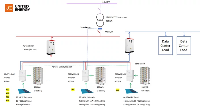 To comply with local regulations and maximize on-site energy usage, the system adopts a Zero Export Solution, ensuring that excess solar energy is not exported to the grid.